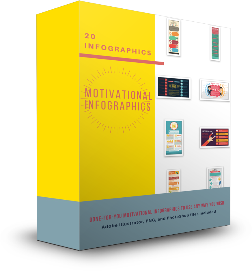 This package of 20 motivational infographics has everything you need to motivate your tribe. What are you waiting for? They are less than $1 each!